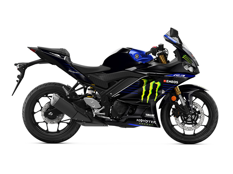 The limited edition YZF-R3 sports an edgy, aggressive look that reflects the Monster Energy Yamaha MotoGP YZR-M1’s styling, made famous by MotoGP superstars Valentino Rossi and Maverick Viñales.